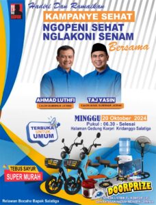 Kampanye yang rencananya akan dihadiri langsung oleh calon gubernur Ahmad Luthfi ini mengusung konsep kampanye sehat. Acara akan diisi dengan kegiatan tebus sayur murah, senam bersama dan pembagian doorpize.